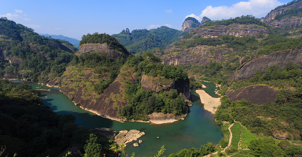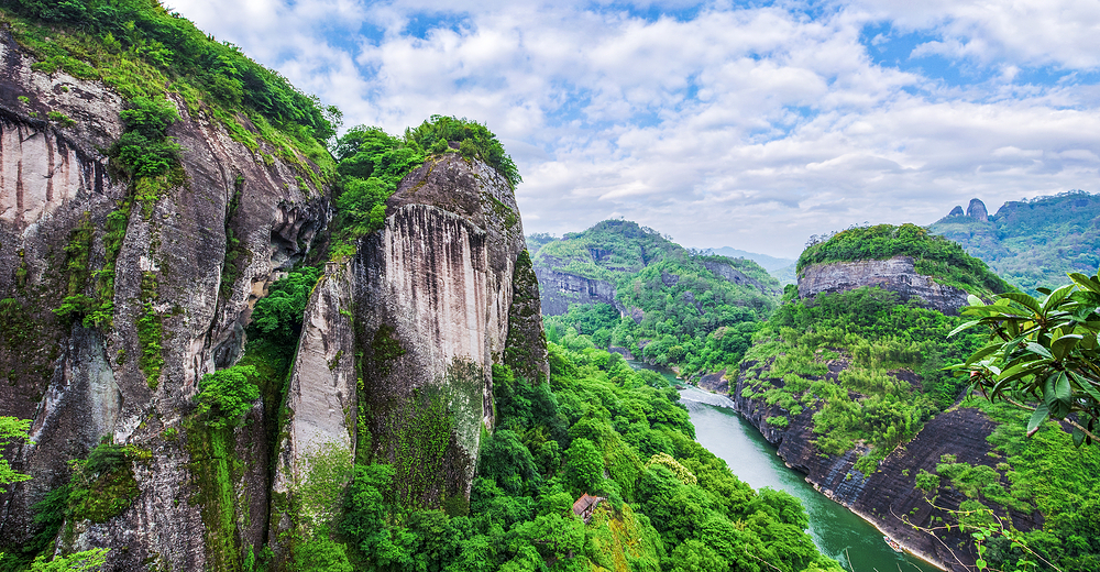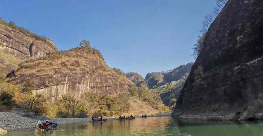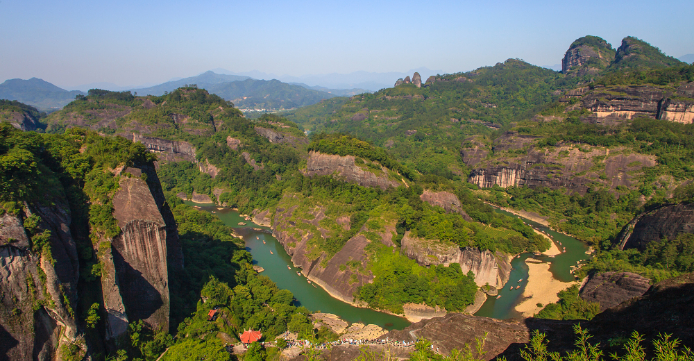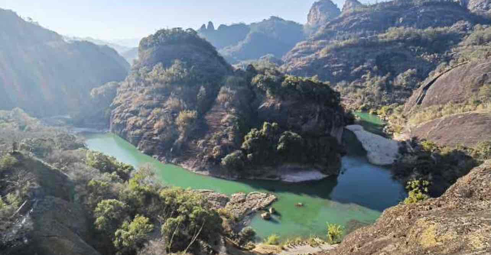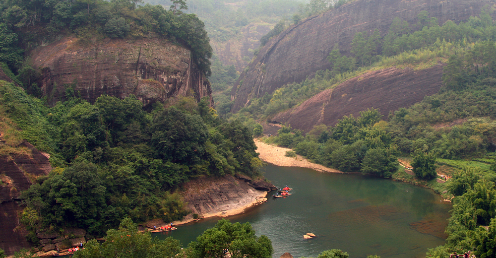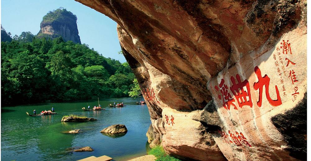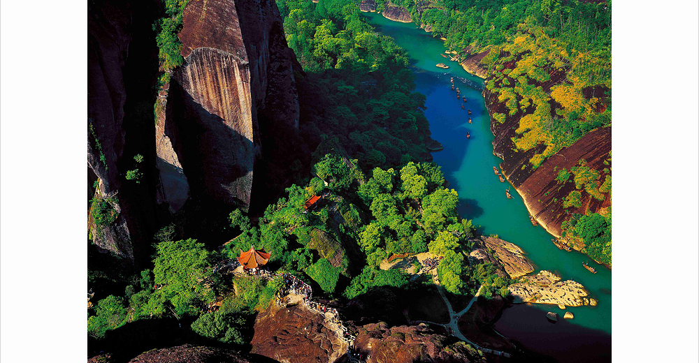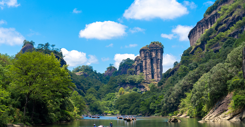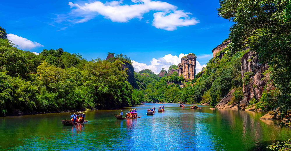 第2天:游九曲溪,乘筏而下可一览“曲曲山回转,峰峰水抱流”的碧水丹山之景,侧耳听溪流,伸手濯碧波,举目峰岩嶙峋,让身心在这九曲间得到彻底放松;游完可以逛逛武夷宫仿宋古街,感受宋人的风雅之趣;